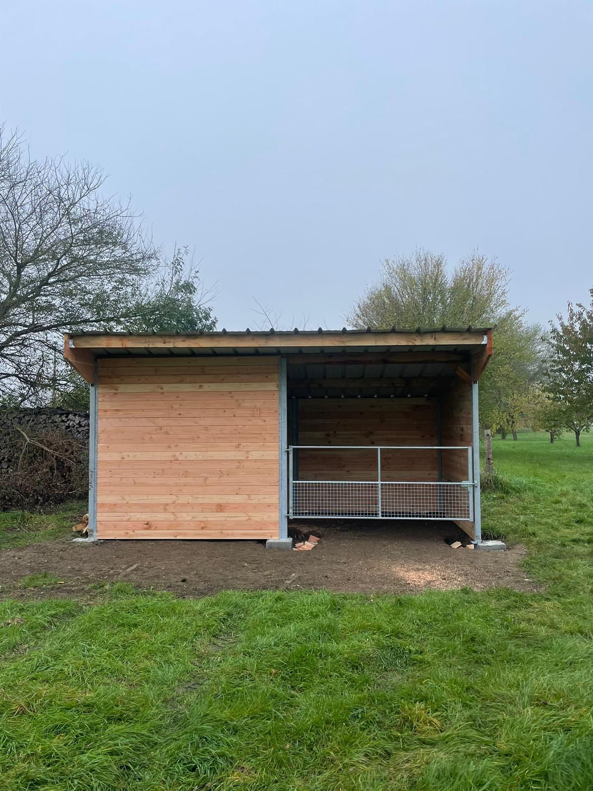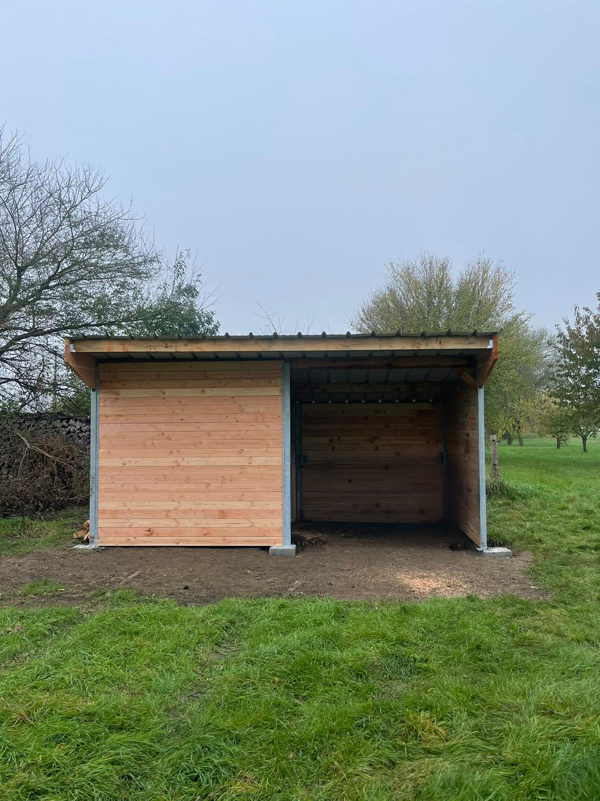 L’Abri avec retour PRO de LCI Cheval est conçu pour offrir à vos chevaux un espace d’abri généreux, fonctionnel et modulable. Il combine une structure robuste en bois Douglas français (classe III naturel), des poteaux métalliques avec platines intégrées, des parois de 48 mm d’épaisseur, avec la possibilité d’un retour central qui augmente la couverture latérale selon vos besoins.