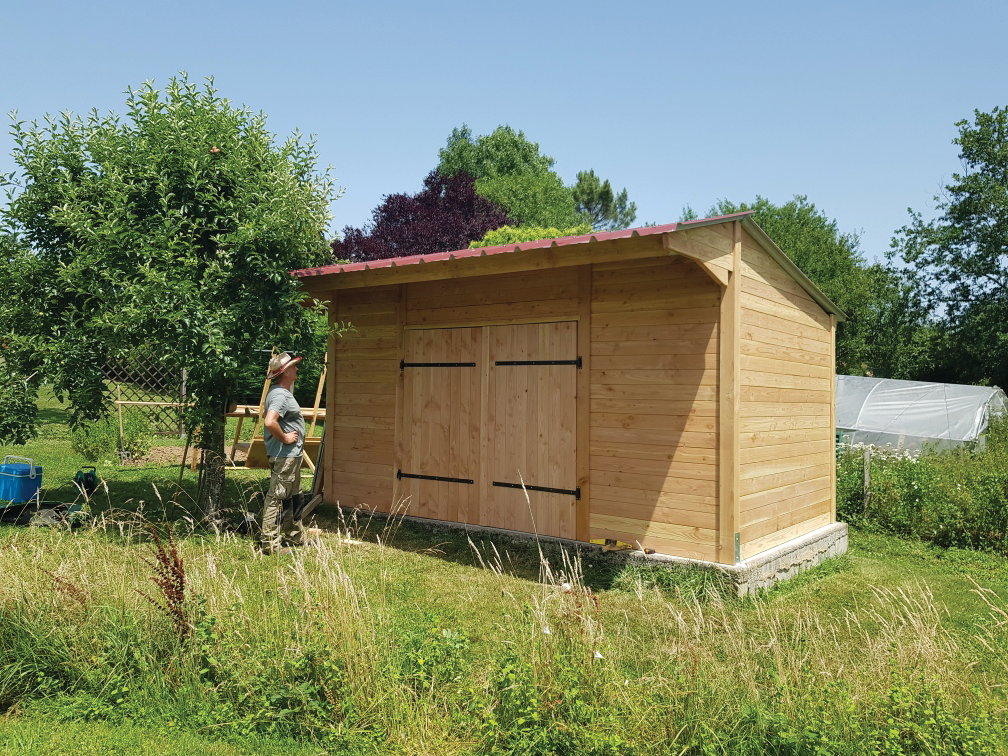 Grâce à sa surface généreuse, cet abri peut aussi servir d’atelier de bricolage ou de local de rangement.