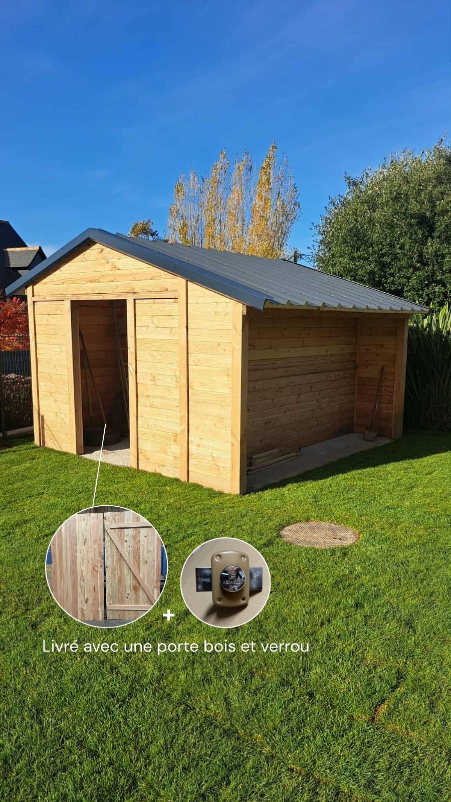 Notre module abri de jardin et bûcher est conçu pour organiser votre atelier de façon optimale. Atelier, local, box ou abri de jardin libre à vous de choisir l’intitulé et l’utilité que vous souhaitez. L’abri est muni d’une porte de service en PVC pour plus de sécurité. En effet, la porte possède une serrure en trois points.