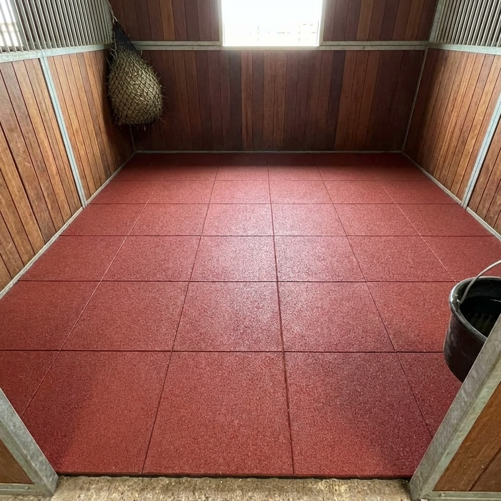 Les dalles antidérapantes en caoutchouc pour box chevaux sont conçues pour améliorer le confort et la sécurité dans les écuries. Grâce à une structure drainante et une surface antidérapante, les dalles offrent une excellente adhérence tout en facilitant l’évacuation de l’eau et de l’humidité.