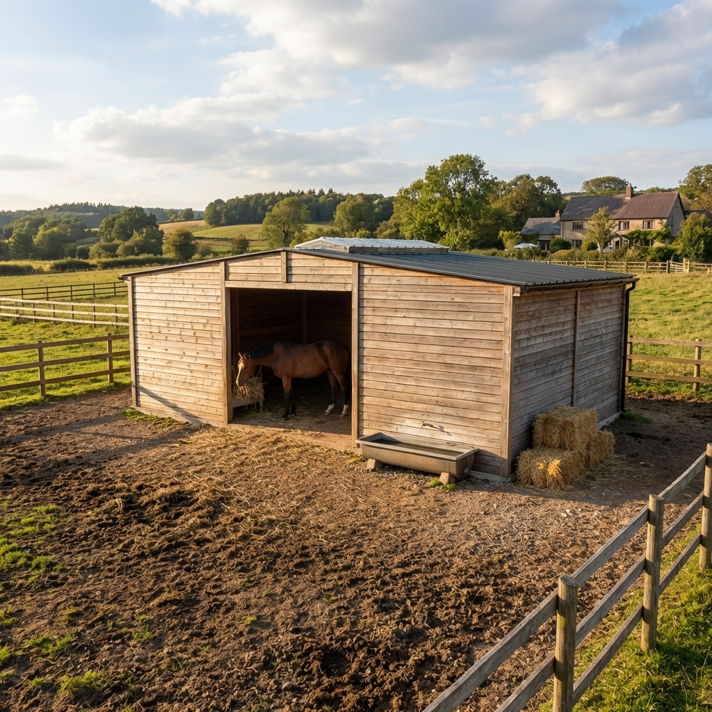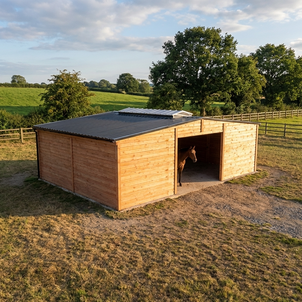 Double abri avec couloir de jonction – modularité, confort et robustesse pour vos chevaux